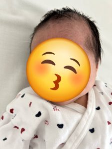 お孫さんは編集で顔に絵文字を入れさせてもらいましたがウインクしたとってもかわいいお顔でしたよ!おめでとうございます!